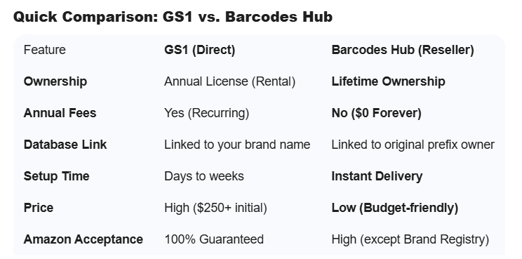 By leveraging legally grandfathered barcodes from Barcodes Hub, you gain the same global scanning power and marketplace compatibility without the burden of annual renewal fees. This allows you to reinvest those savings where they matter most: growing your product line and reaching new customers.